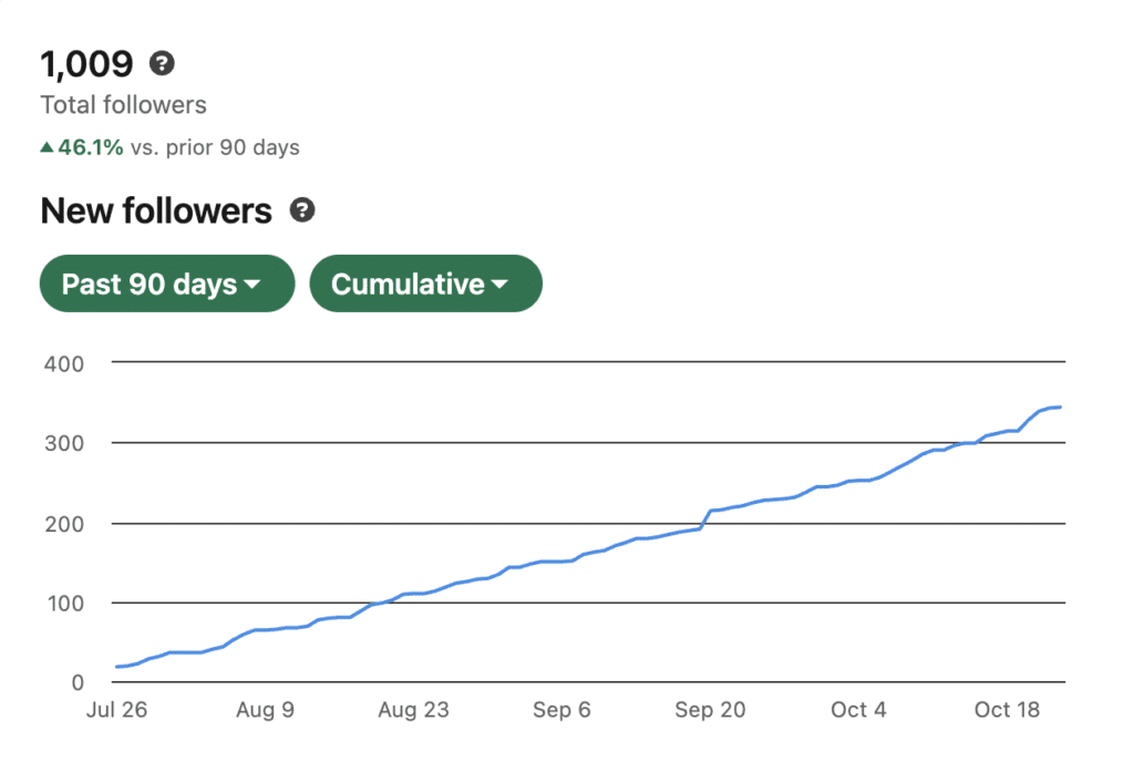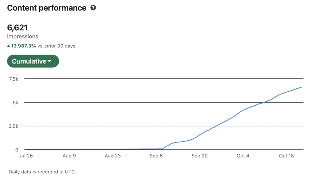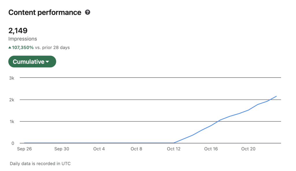 After one mont, there is big increase in impressions across 100% of profiles we take over on Linkedin.