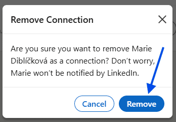 Once a connection is removed, LinkedIn simply updates their status to Connection Removed. That is the only confirmation you will see. There is no requirement to message the person, explain your decision, or take any further action.