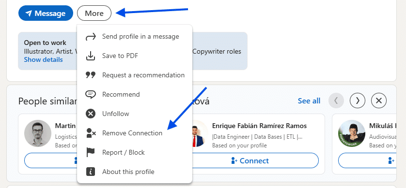 One of the fastest ways to remove a connection is directly from that person’s profile. This method works best when you already know exactly who you want to remove and are viewing their page.