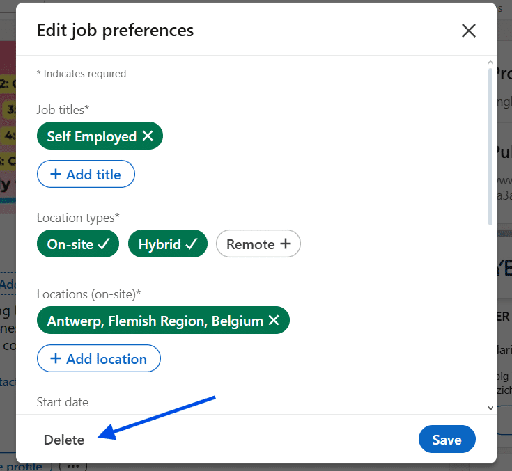 Once the editing window opens, look for the small “Delete” link. Clicking this removes the entire Open to Work section. LinkedIn will ask you to confirm your choice. Select Delete again to finalize the change.